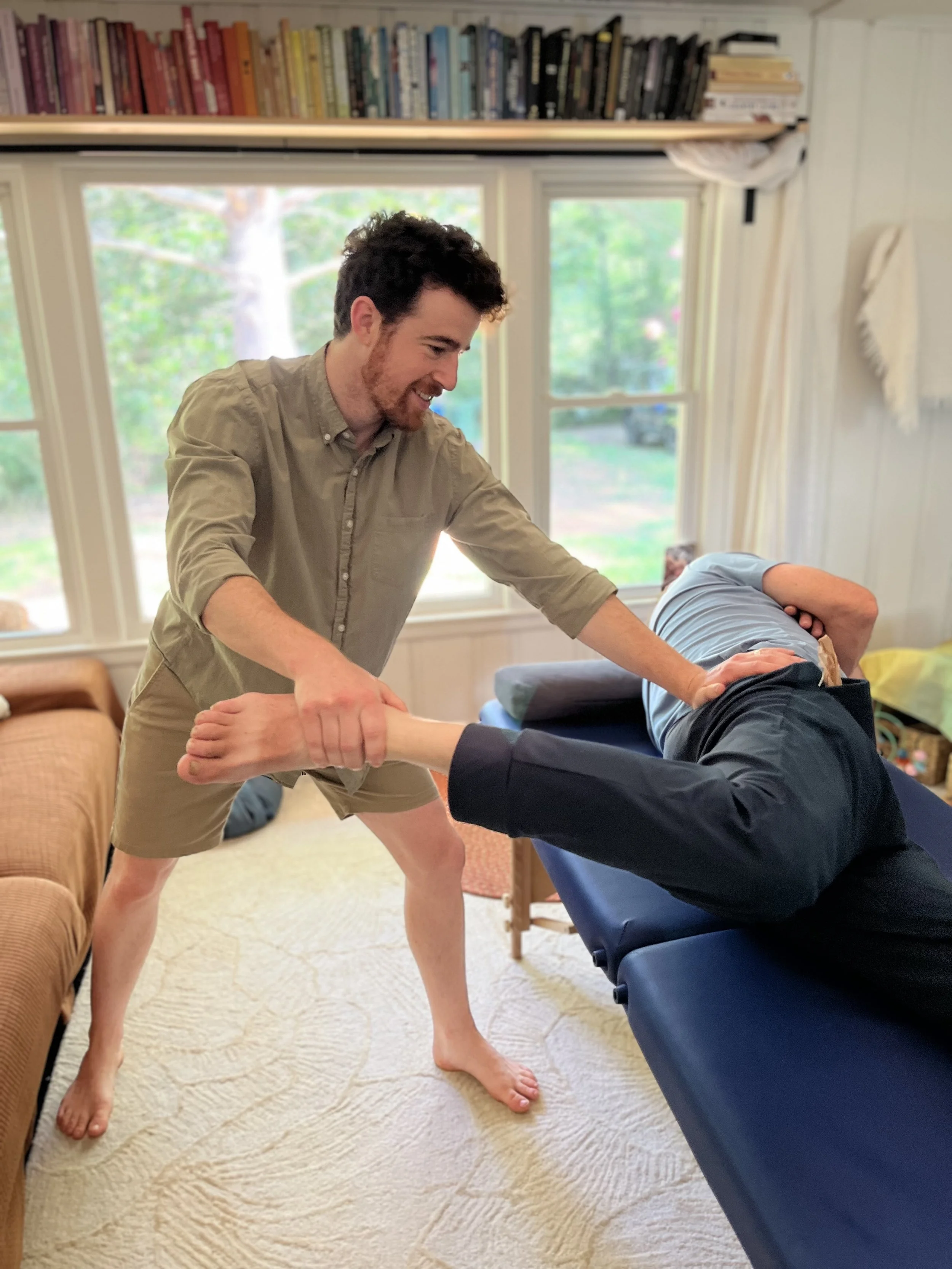 Sessions are conducted fully clothed, on a massage table or padded floor mat. You’ll be guided through gentle, intentional movement, hands-on release work, and assisted stretching, designed to unwind stored tension, increase fluidity, and activate key stabilizing muscles.